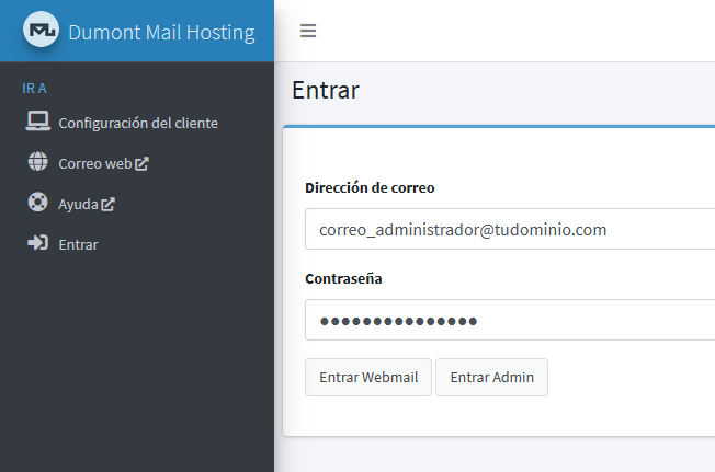 Para acceder a la configuración del correo, si tenés tu propio dominio, entrá a través de https://mail.<tu-dominio>.com